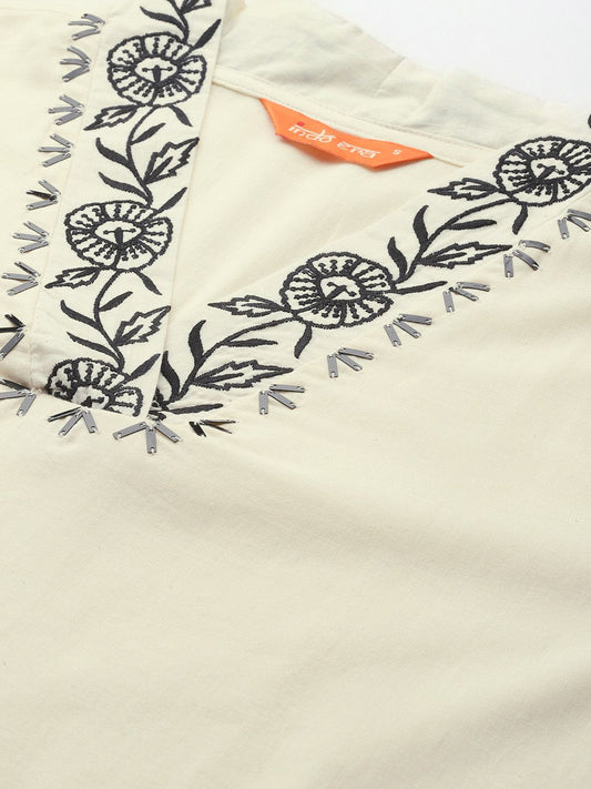 Dhiyona IE Floral Embroidered Thread Work Pure Cotton Kurta with Trousers & With Dupatta