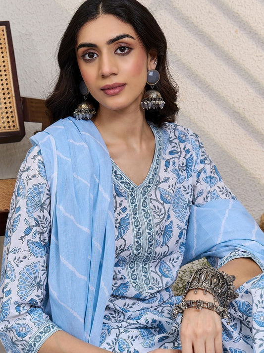 Dhiyona IE Women Blue Ethnic Motifs Printed Kurta with Palazzos & With Dupatta