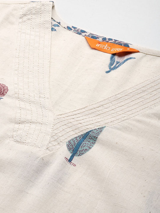 Dhiyona IE Floral Printed V-Neck Straight Kurta with Trousers