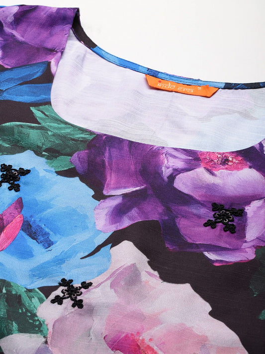 Dhiyona IE Black Floral Embroidered Straight A-Line Kurta With Trouser