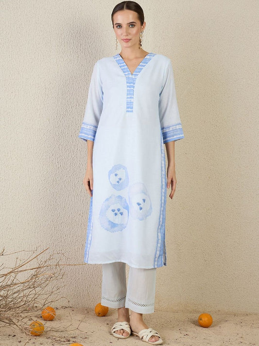 Dhiyona IE Floral Printed V-Neck Kurta with Palazzos
