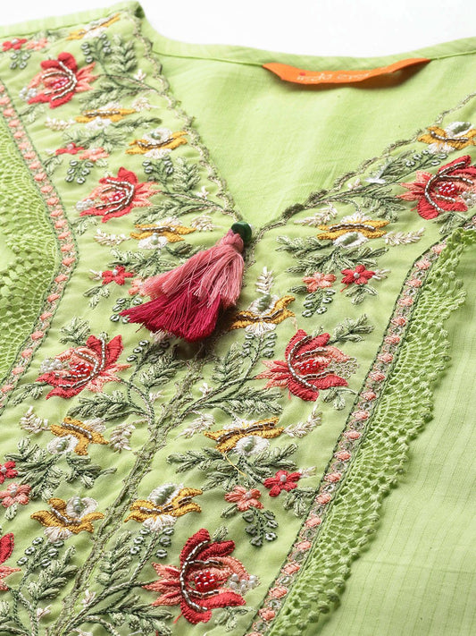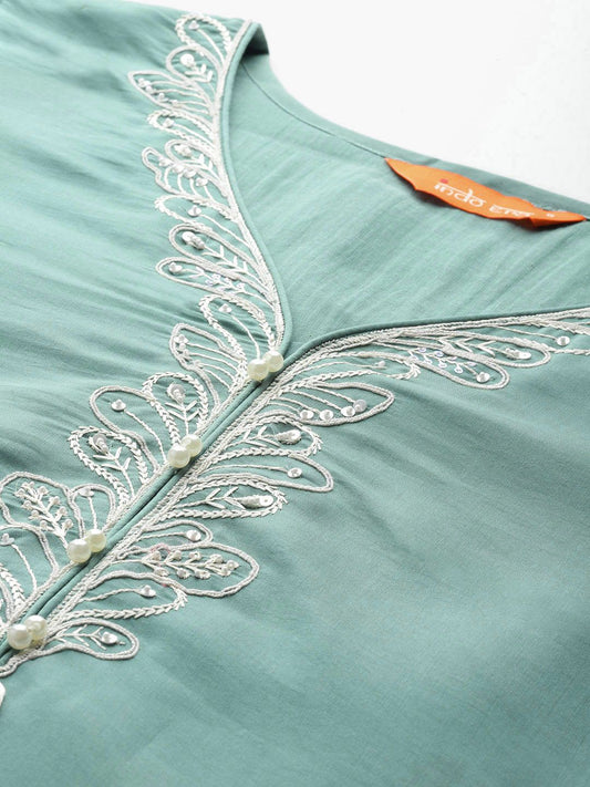 Buy 2 Get 1 FreeVendor:Dhiyona IEDhiyona IE Women's Embroidered V-Neck Pure Cotton Straight Kurta With Trousers And Dupatta