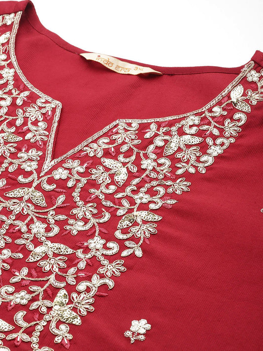 Buy 2 Get 1 FreeVendor:Dhiyona VADhiyona VA Women'sMaroon V-Neck Long Sleeves Anarkali Kurta With Palazzo & Dupatta