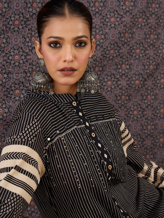 Dhiyona IE Printed PleatedPure Cotton Kurta with Trousers