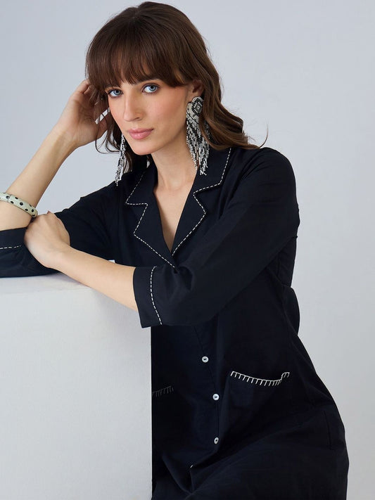 Dhiyona IE Women Regular Thread Work Pure Cotton Kurta with Palazzos