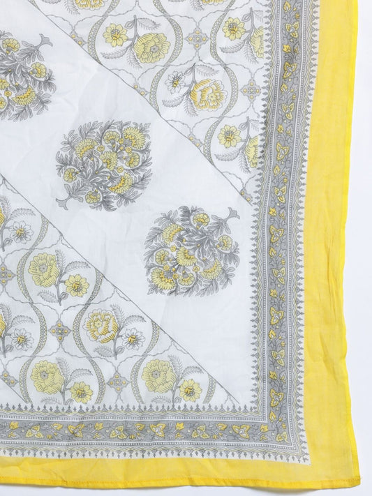 Dhiyona IE Women Floral Printed Cotton A-Line Kurta with Trousers & Dupatta