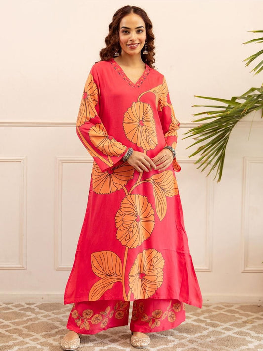 Dhiyona IE Women Floral Printed A-Line Kurta with Palazzos