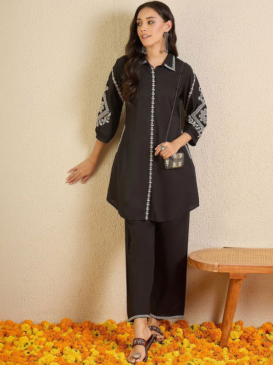 Dhiyona IE Women Ethnic Motifs Embroidered Regular Thread Work Kurta with Trousers