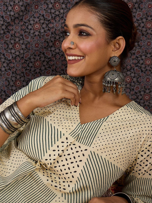Dhiyona IE Women Geometric Printed Cotton Kurta with Trousers & Dupatta