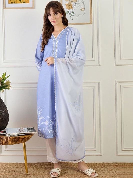 Dhiyona IE Floral Embroidered Thread Work Pure Cotton Straight Kurta With Trousers & Dupatta