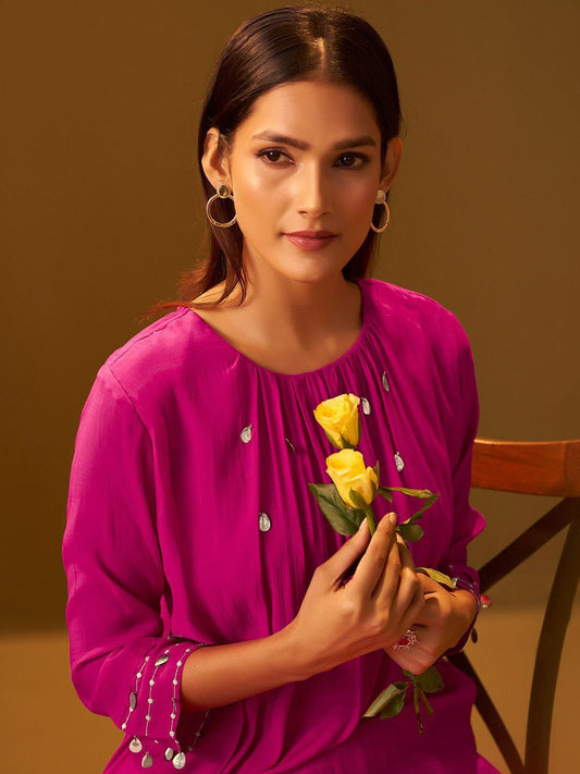 Dhiyona IE Women Ethnic Motifs Embroidered Regular Thread Work Kurta with Trousers