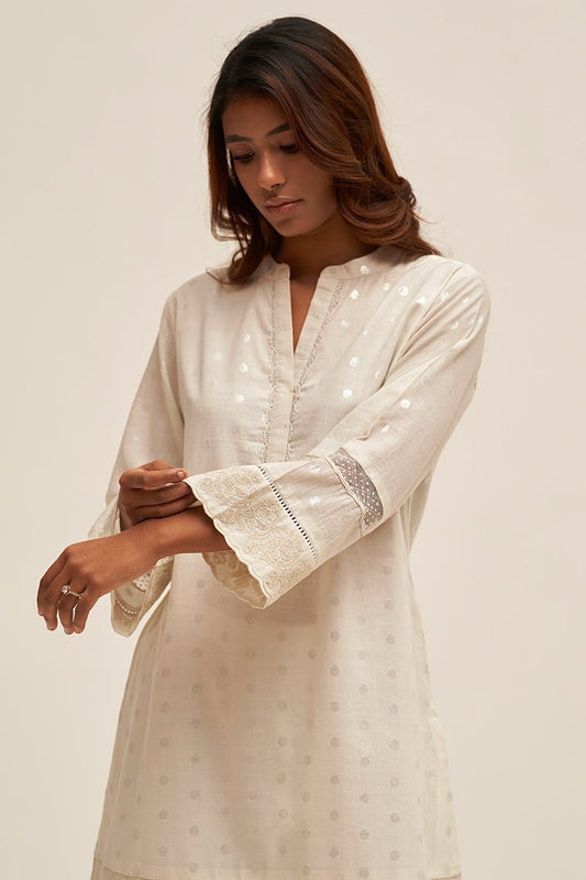 Men's Cream Silk Blend Straight Jacket Kurta and Pyjama Set