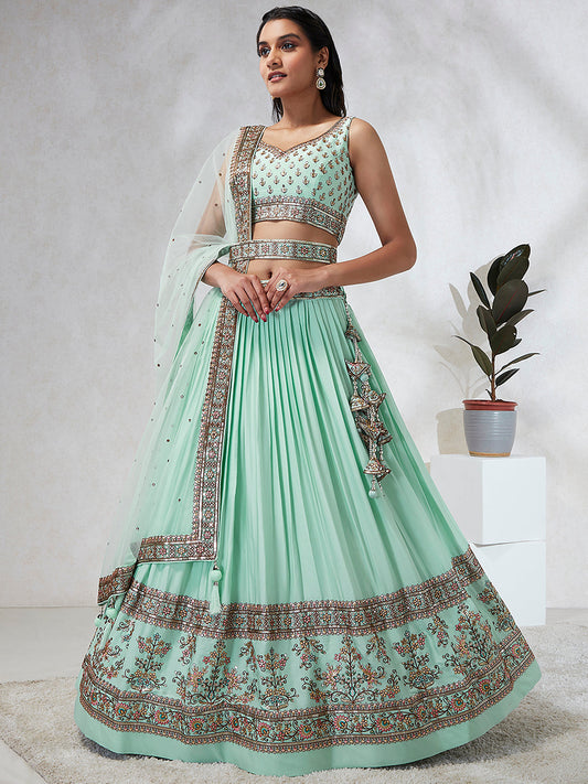 Women Sea Green Georgette Sequins and thread embroidery Lehenga choli & Dupatta