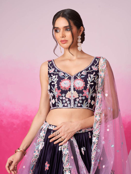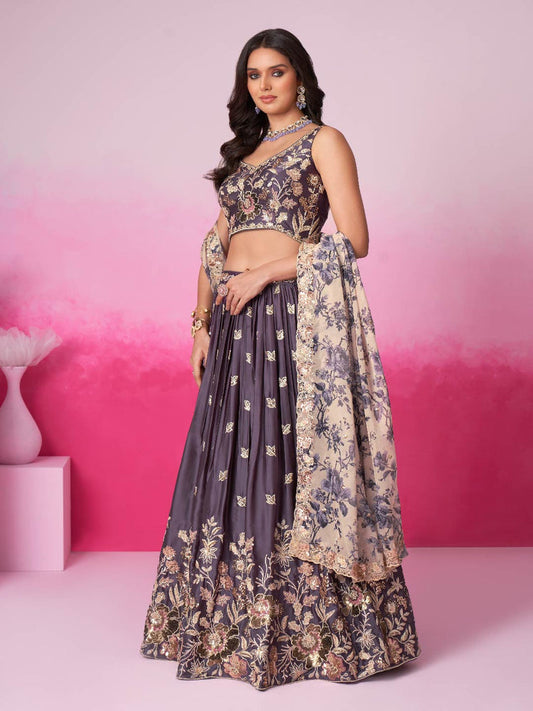 Women Purple Satin silk Sequins embroidery Lehenga choli & Dupatta