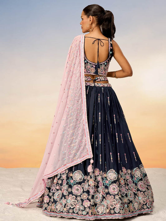 Women Navy blue Pure Georgette Sequins and thread embroidery Lehenga choli & Dupatta