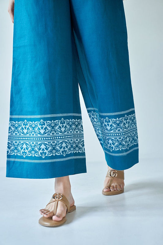 Women's At Ease Teal Blue Cotton Satin Co-ord Set