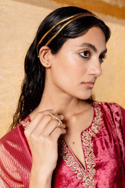 Women's Fushia Pink and Beige Silk Velvet Salwar Suit