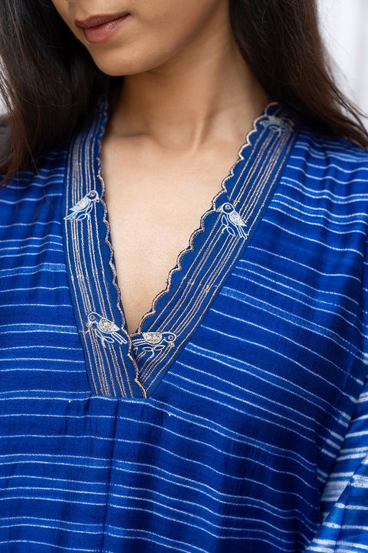 Women's Corsair Blue Silk Hand Made Tussar Silk Shibori Co-ord Set