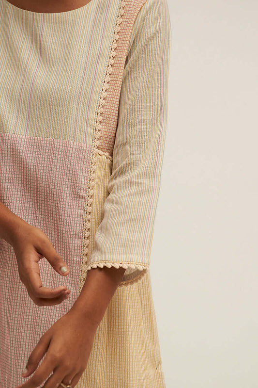 Buy 2 Get 1 FreeVendor:Dhiyona GFWomen's Cream and Beige Woven Kurta Suit Set With Chiffon Printed Dupatta