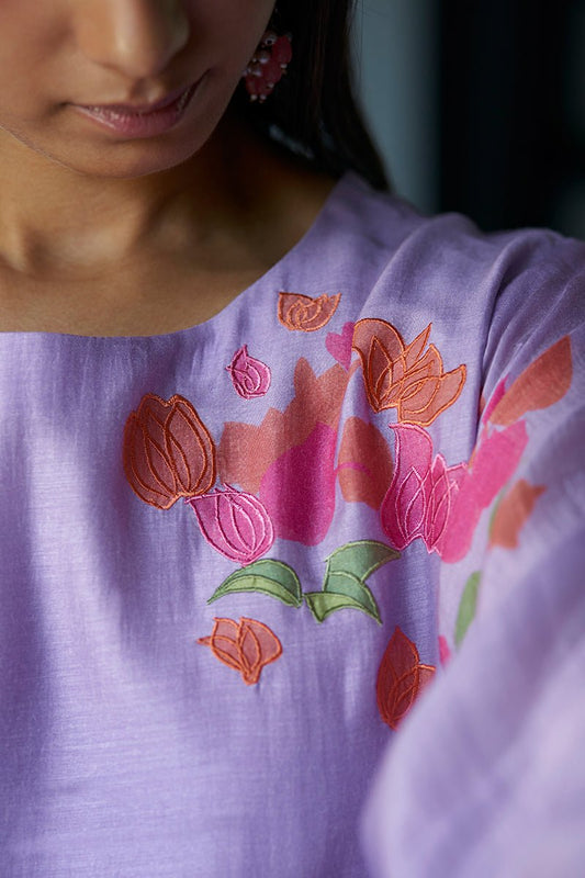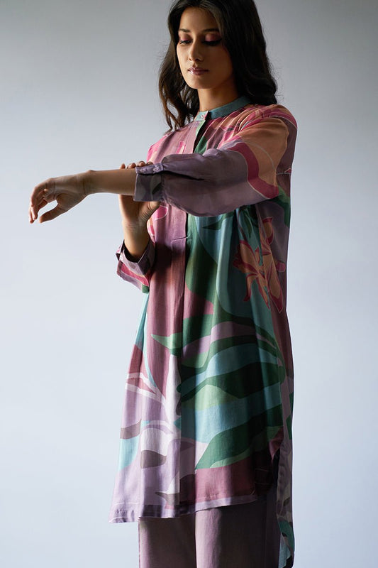 Women's Dusty Lilac and Rose Pink Mix Colored Bemberg Silk Printed Co-ord Set