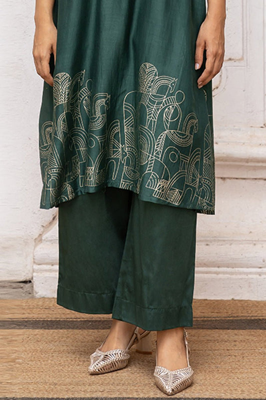 Women's Green Gold Foil Print Bemberg Silk Festive Co-ord Set