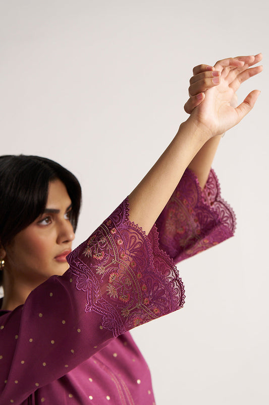 Women's Damson Purple Viscose Zari Jacquard Zari Polka Festive Co-ord Set
