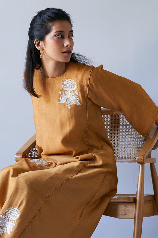 Women's Inca Gold Bemberg Silk Co-ord Set With Applique Work