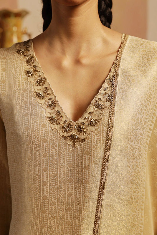 Buy 2 Get 1 FreeVendor:Dhiyona GFWomen's Fog Beige Woven Viscose Chanderi Zari Kurta Suit Set With Delicate Embroidery Detailing
