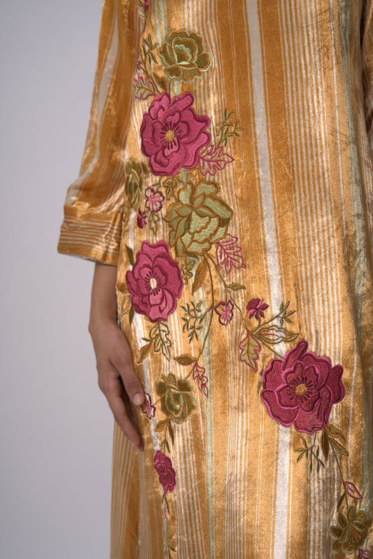 Women's Mustard and Beige Silk Velvet Salwar Suit