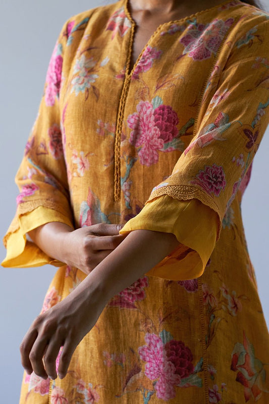 Women's Mustard Yellow Linen Chintz Printed Co-ord Set