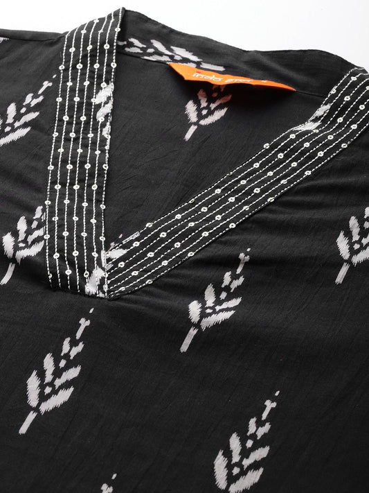 Dhiyona IE Plus Size Floral Printed Mirror Work Pure Cotton Kurta Set