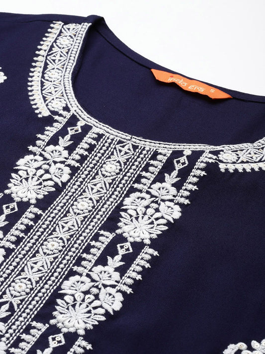 • Dhiyona IE Floral Embroidered Regular Thread Work Kurta With Trousers & Dupatta
