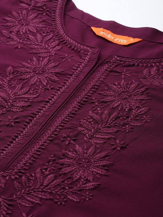 Dhiyona IE Floral Embroidered Regular Thread Work Kurta With Trousers & Dupatta