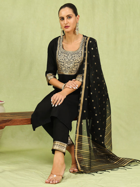 Dhiyona VV Women's Silk Blend Kurta Pant Dupatta Set