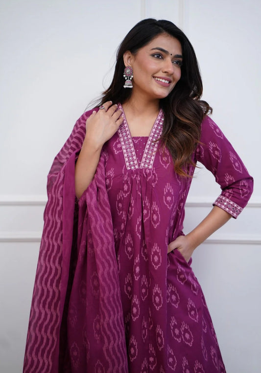 Magenta Lilly Cotton Silk Anarkali Set