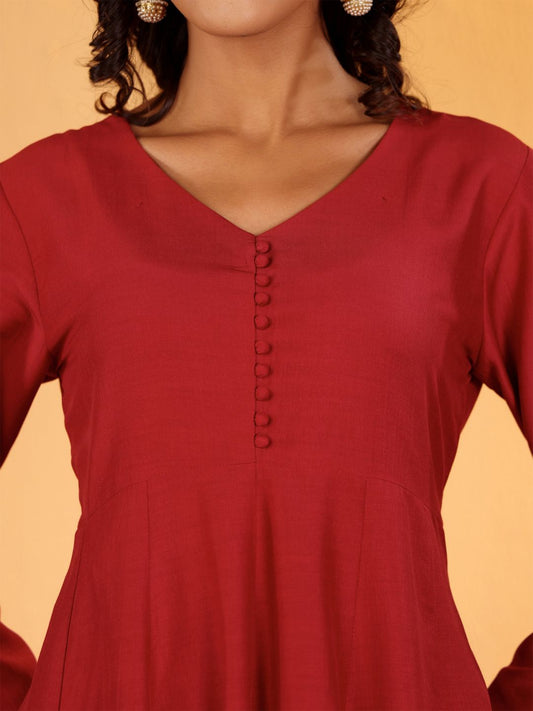Dhiyona VA Women'sMaroon V-Neck Long Sleeves Anarkali Kurta With Palazzo & Dupatta