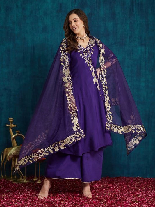 Dhiyona RV Women's Elegant Angrakha Style Anarkali Kurti Set with Embroidered Dupatta