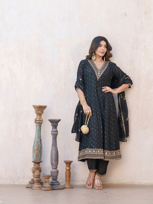 Dhiyona SN Women's Paisley Embroidered Anarkali Kurta & Trousers With Dupatta