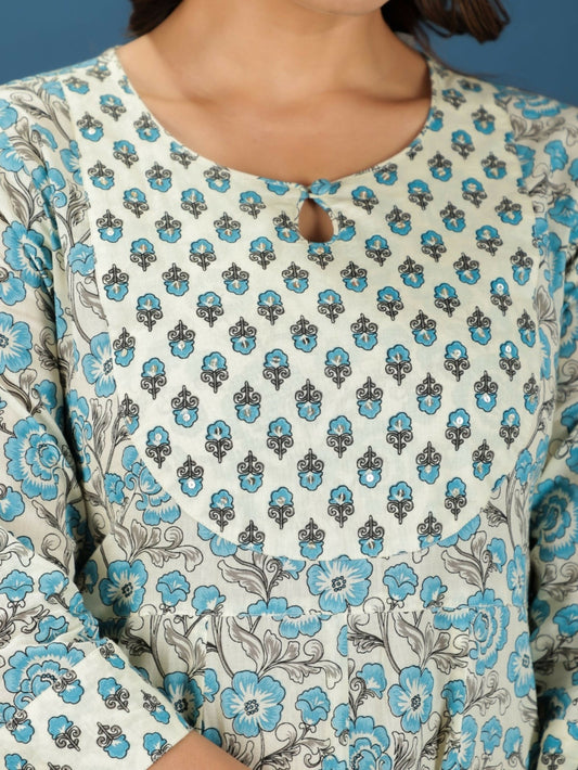 Women's Anarkali Soft Cotton Floral Print Women's Kurta - Off White