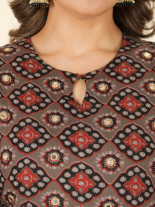 Women's Brown Soft Cotton Geometric Straight Kurta for Women