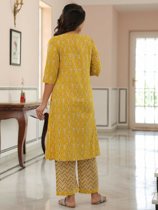 Women's A-line Soft Cotton Butti Print Women's Kurta Set - Yellow
