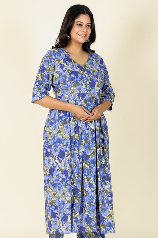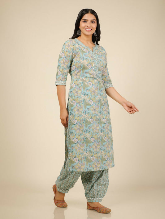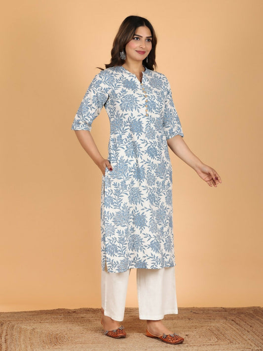Women's Blue Soft Cotton Floral Straight Kurta for Women