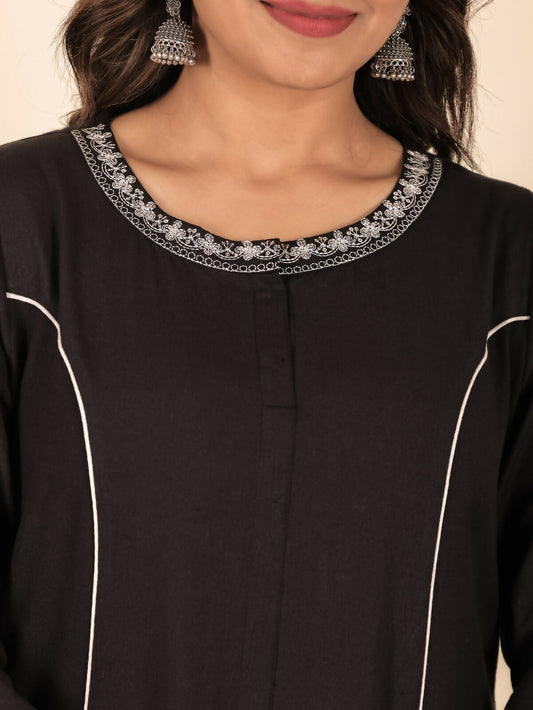 Women's A-line Linen Cotton Solid Women's Kurta - Black