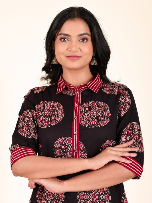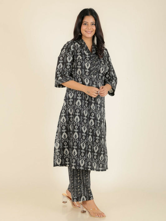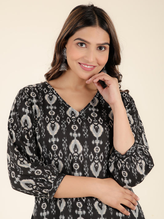 Women's Black Soft Cotton Ikat Straight Kurta for Women