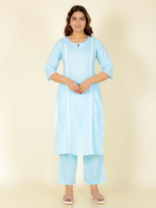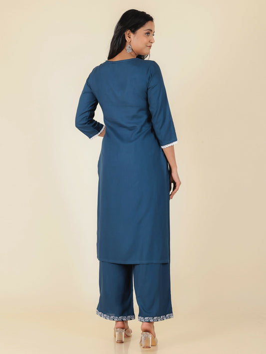 Women's Blue Rayon Solid Print Straight Kurta Palazzo Set for Women