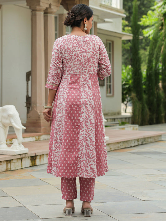 Women's Anarkali Soft Cotton Block Print Women's Kurta Set - Pink