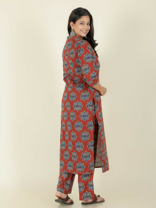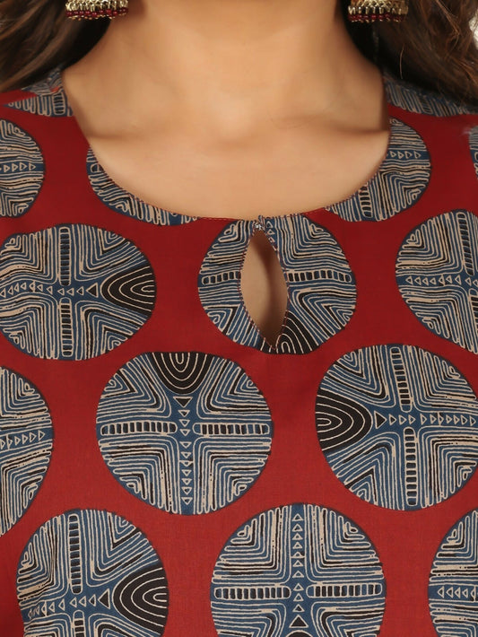 Women's Red Soft Cotton Ajrakh Straight Kurta for Women
