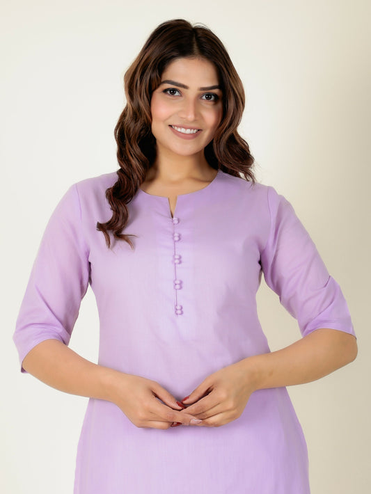 Women's Linen Purple Straight Kurta Set