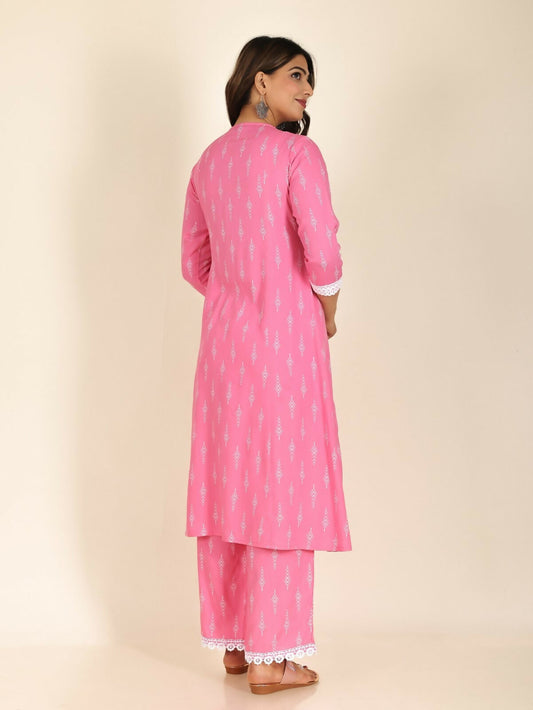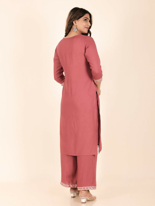 Women's Pink Rayon Solid Print Straight Kurta Palazzo Set for Women