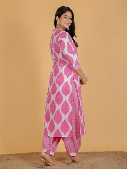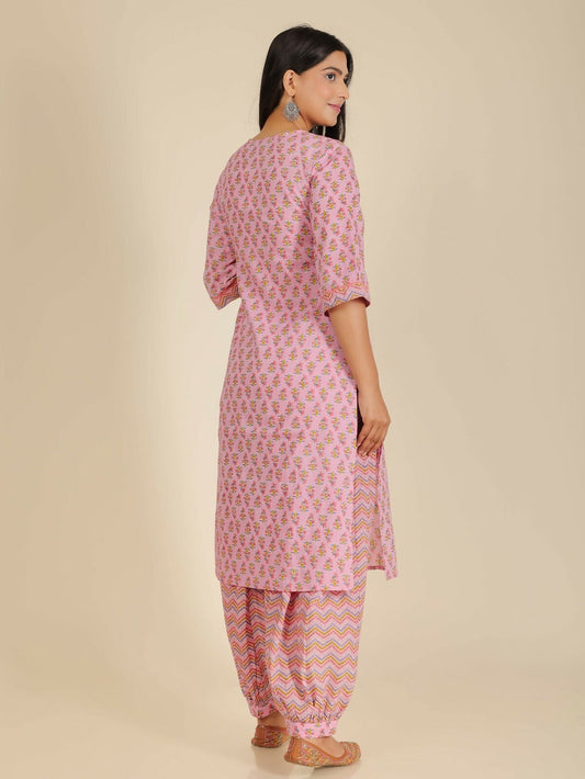 Women's Pink Soft Cotton Floral Print Straight Kurta Salwar Set for Women